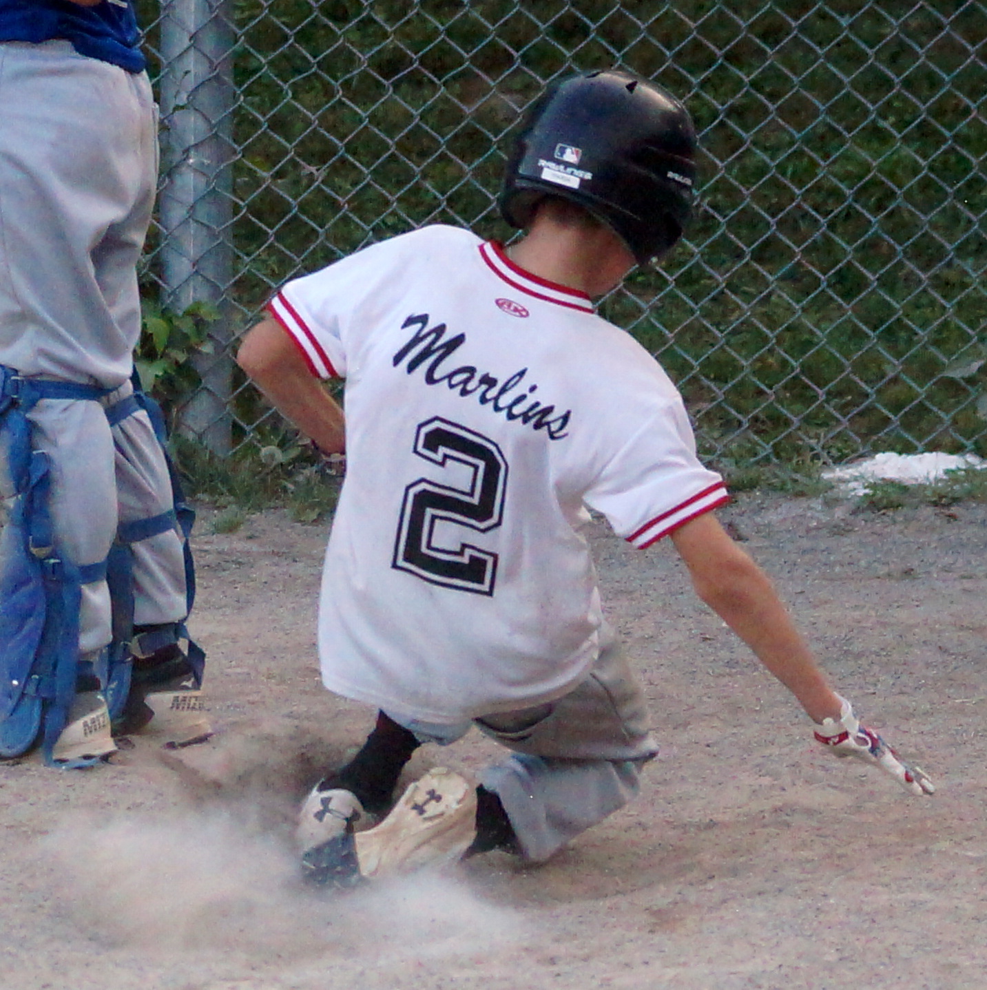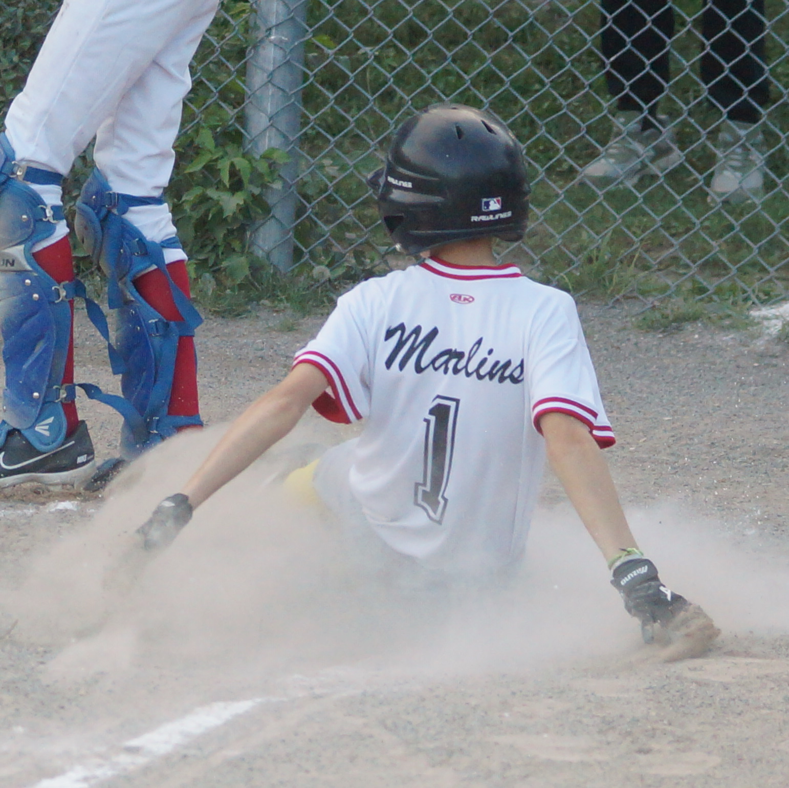 Marlins baserunner Sam (2) scores a run that gave the M’s an 8-1 upper hand in the third inning.