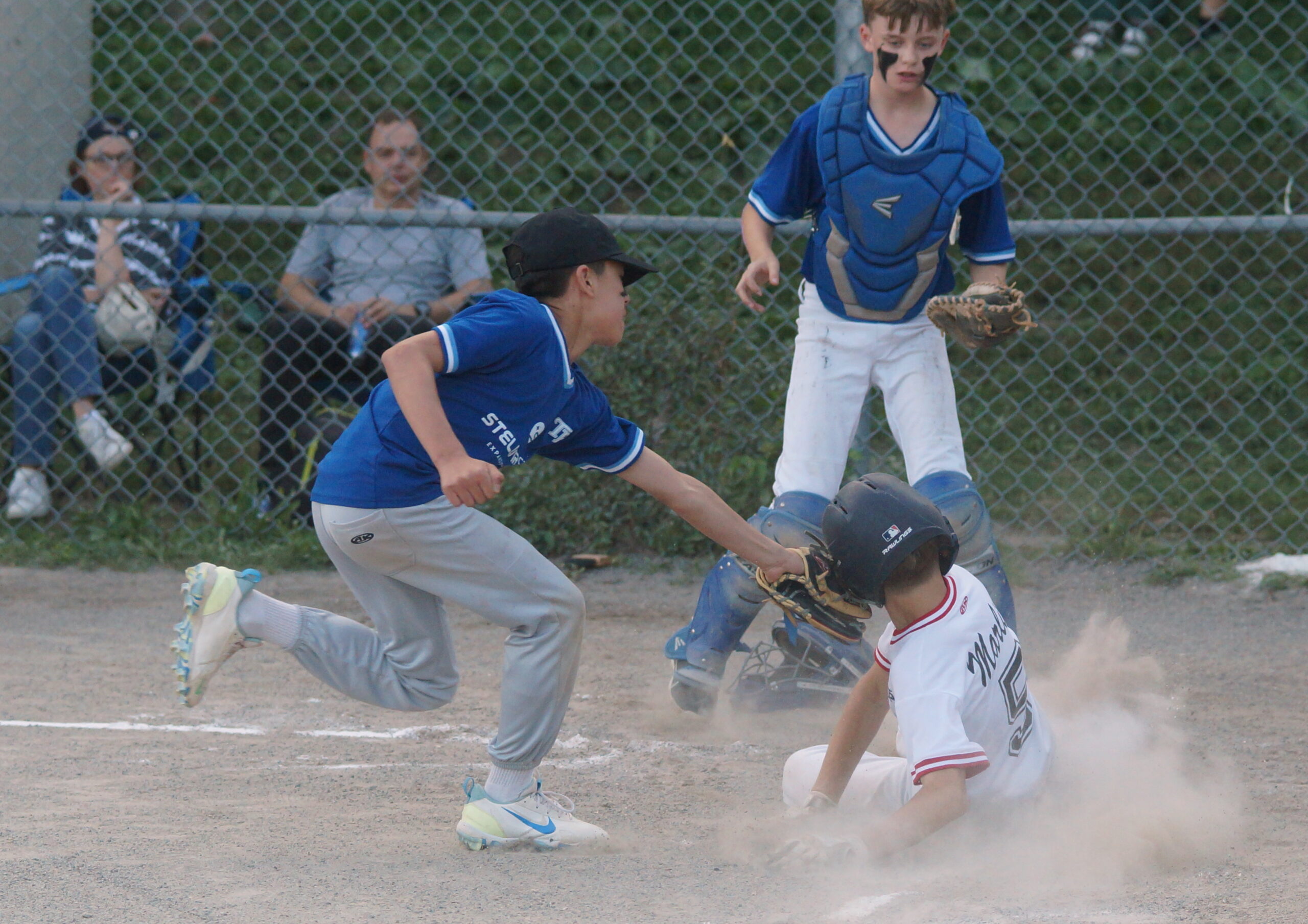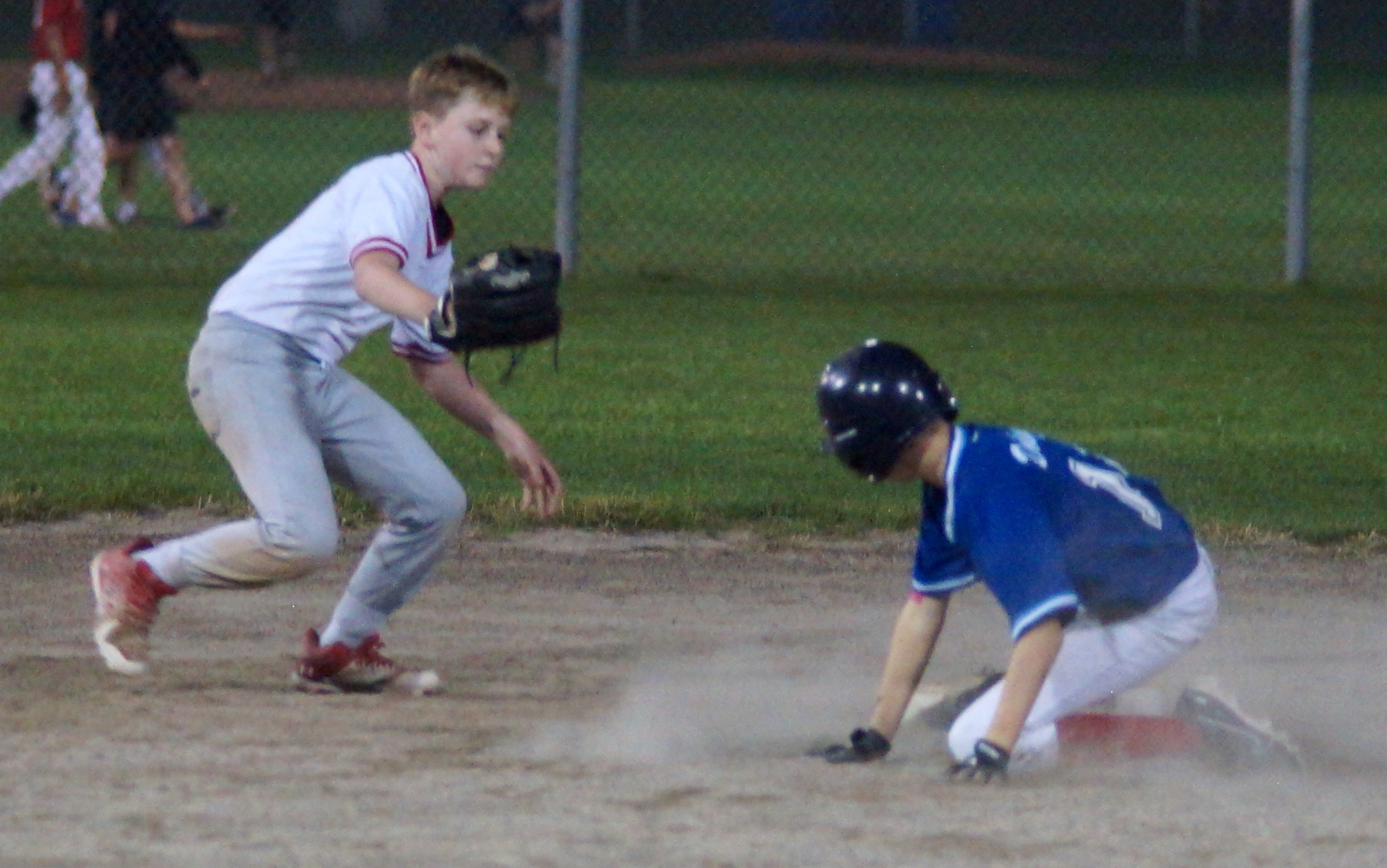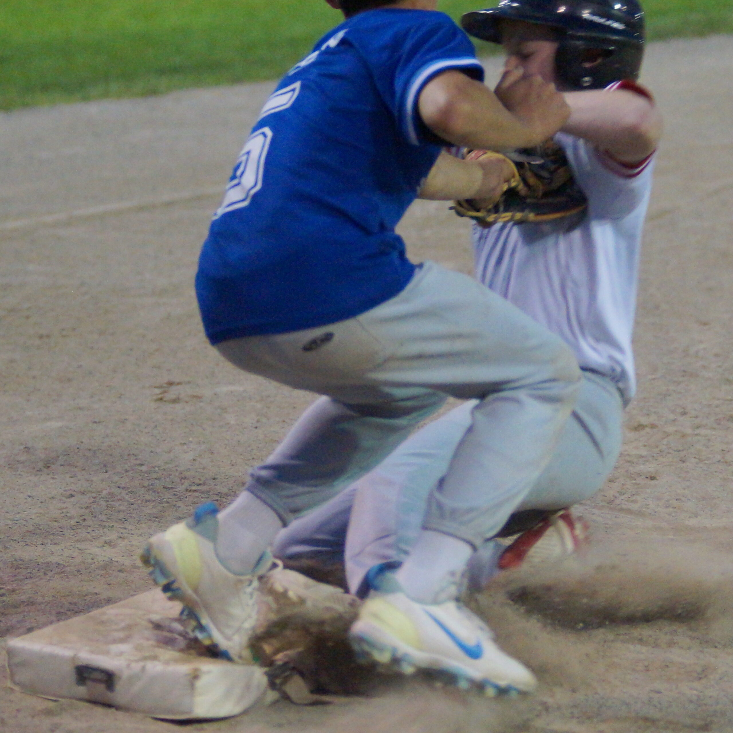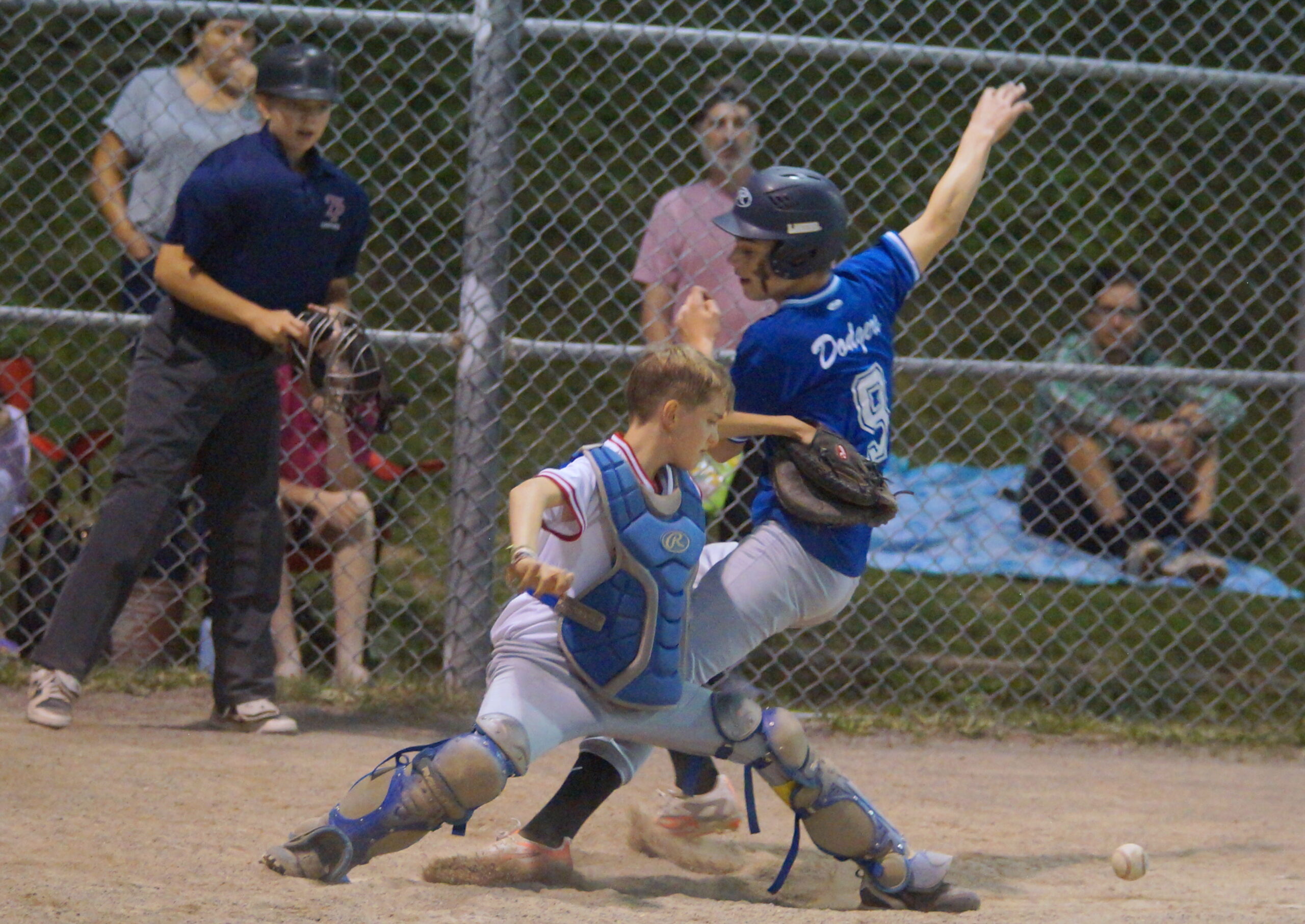 As Jaxon hustled towards his goal, Dodgers catcher Lucas made a smokestack lightning throw down the line to third baseman Owen, who tagged out Jaxon in a snappy 2-5 play to ring up the first out.
