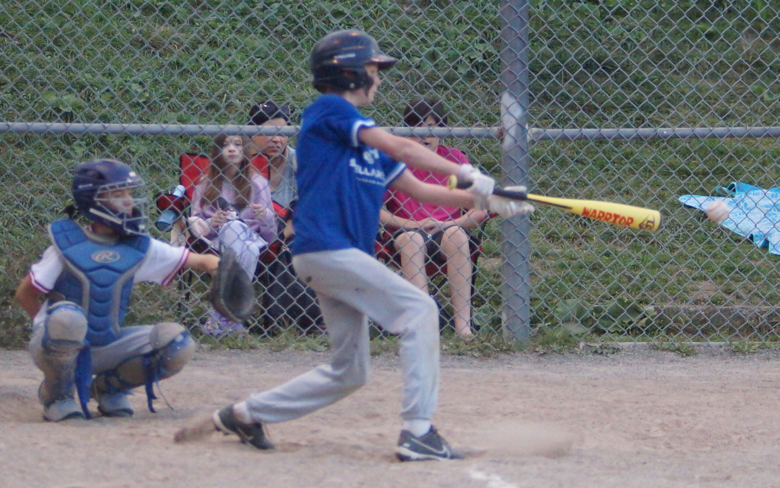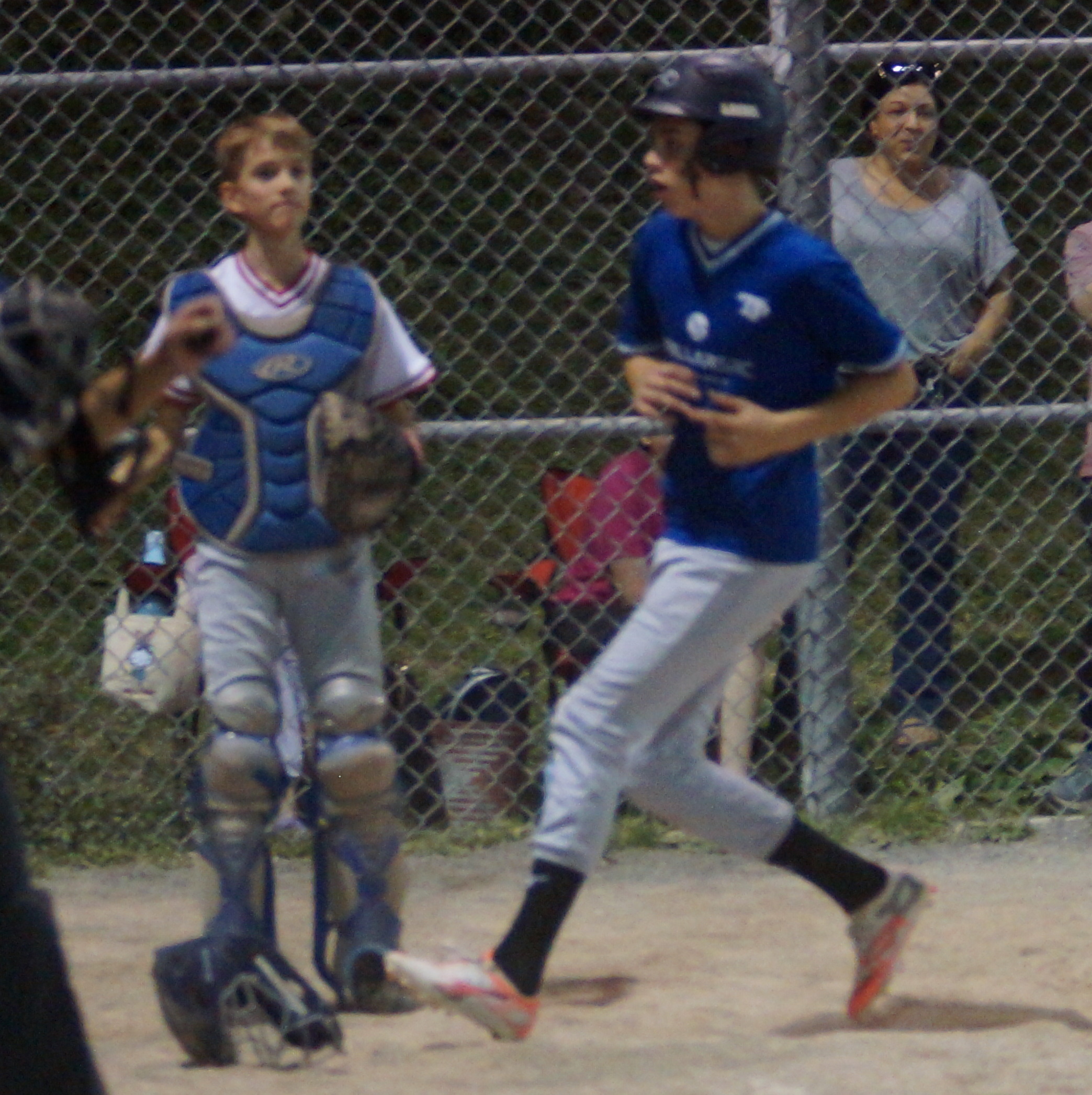 With runners on third and second, Milo (7) stepped up to the dish and stroked a RBI hit that advanced Jaxon to third and brought Sam home with the Marlins go ahead run.