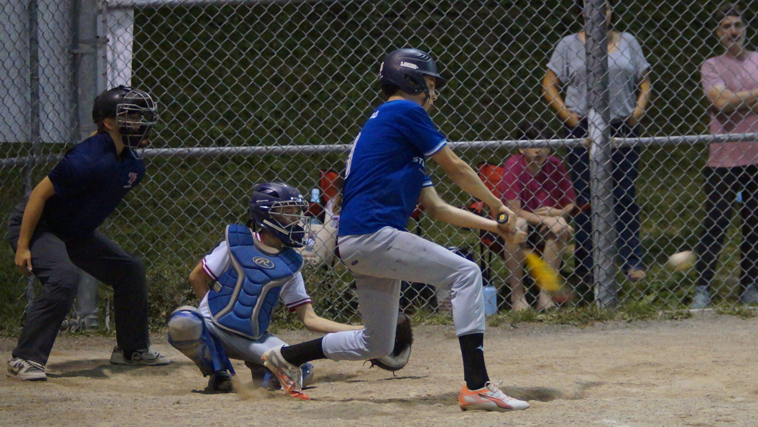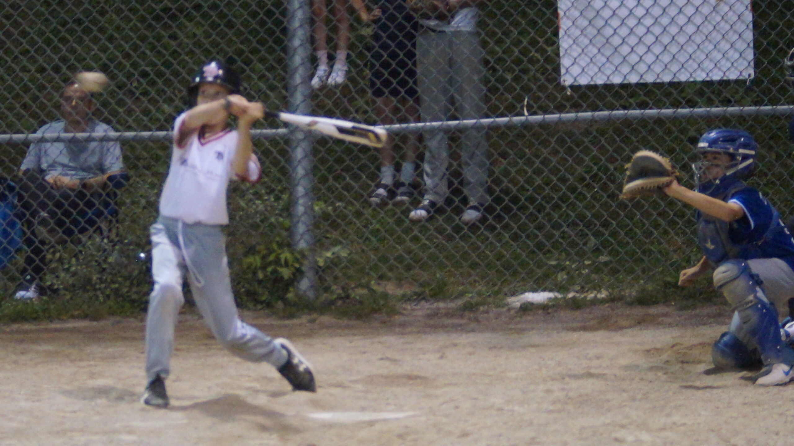 With a runner on first, Dodgers first baseman Keiran battled glare of the incandescent lights along the first baseline to reel in an eight mile high pop up off the bat of Leif for the second out.